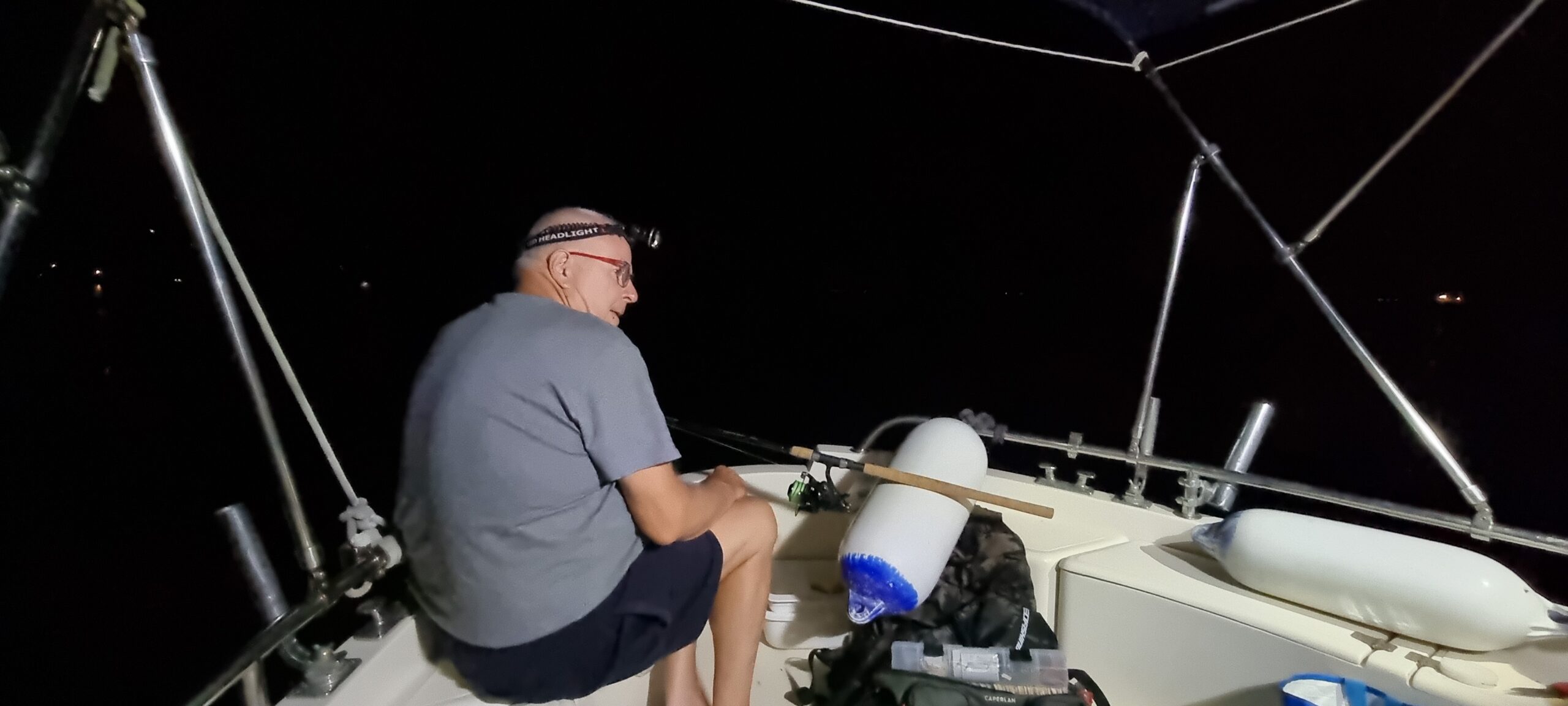 Po treh urah ribolova so se morale barke premakniti v dovoljeno ribolovno polje za nočni ribolov, ki je zajemalo 300-metrski obalni pas od plaže Belvedere do ovinka pri Rudi. Medtem je burja popustila in v skoraj popolni bonaci so lahko ribiči uživali v prelepi poletni noči. Tisti, ki so lovili bližje plaže San Simon, so lahko tudi spremljali koncert skupine Bijelo dugme. Med poslušalci koncerta je bila tudi sodniška barka na kateri so bili sodnik Zvonimir Grgurovič in pomožni sodnik Joško Mattias ter klubski kolega Matjaž Baznik. Večina ribičev je noč preživela v ribolovnem ritmu, kakšen pa si je verjetno tudi privoščil uro ali dve spanja pod zvezdami. V soboto ob 05:00 so se lahko ribiči ponovno odpravili na svoje pozicije znotraj ribolovnega področja za dnevni ribolov.